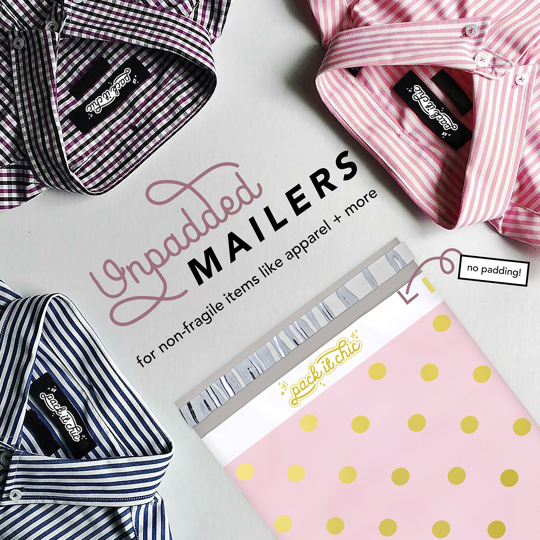 - Durable (Unpadded): Made with premium-grade, virgin Polyethylene plastic, Pack It Chic plastic shipping bags are durable and waterproof. Although these polymailers are unpadded, they are still puncture and tear resistant - making these poly bags ideal for shipping nonfragile merchandise. These 10X13 poly mailers are perfect as apparel bags and for packaging clothes, shirts, tshirts, garments.